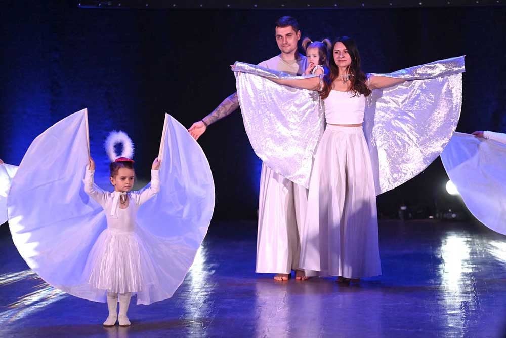 Дмитрий и Екатерина Трухановичи с дочками Евой и Николь представили на суд жюри танец про аиста, где продумана была каждая деталь. Супруги больше десяти лет занимались в студии «Флай», там в своё время и познакомились. Постепенно подростковые отношения выросли в крепкую семью. Эту историю они и постарались воплотить в танце.