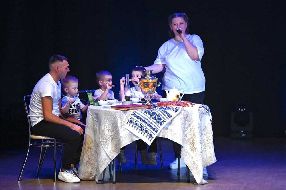 Вячеслав и Марина Ковалёвы с сыновьями интересно раскрыли тему творческого конкурса, где нужно было показать связь с традициями предков. Конкурсанты рассказали историю семейной реликвии – прабабушкиного самовара, который прошёл с ней войну, и в самые лихие дни дарил семье своё тепло, буквально спасал от смерти. Сам самовар тоже вынесли на сцену, где вся семья собралась за импровизированным чаепитием.