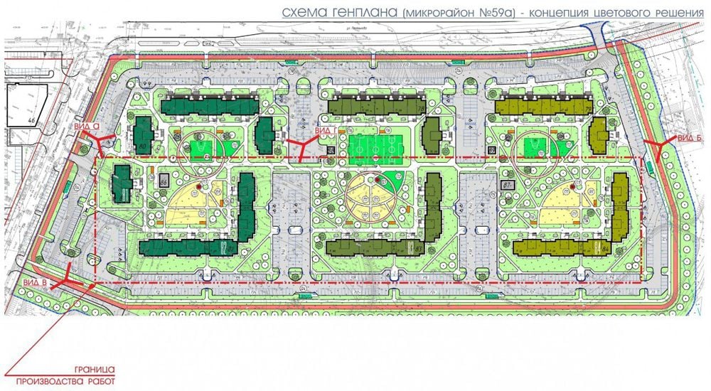 Напомним, документацию на микрорайон 59а и дома в нем разработал институт «Гомельгражданпроект». С общей концепцией определились сразу: это будет небольшой и уютный район почти на 1200 квартир с тремя дворами без машин. Пяти- и четырехподъездные дома поставят буквами «П», пространства внутри сделают зонами отдыха с мягким покрытием. Подъезды в домах спроектированы сквозными, так что выйти из них можно будет как в свой двор, так и к линии парковки, которая будет окаймлять микрорайон по периметру.