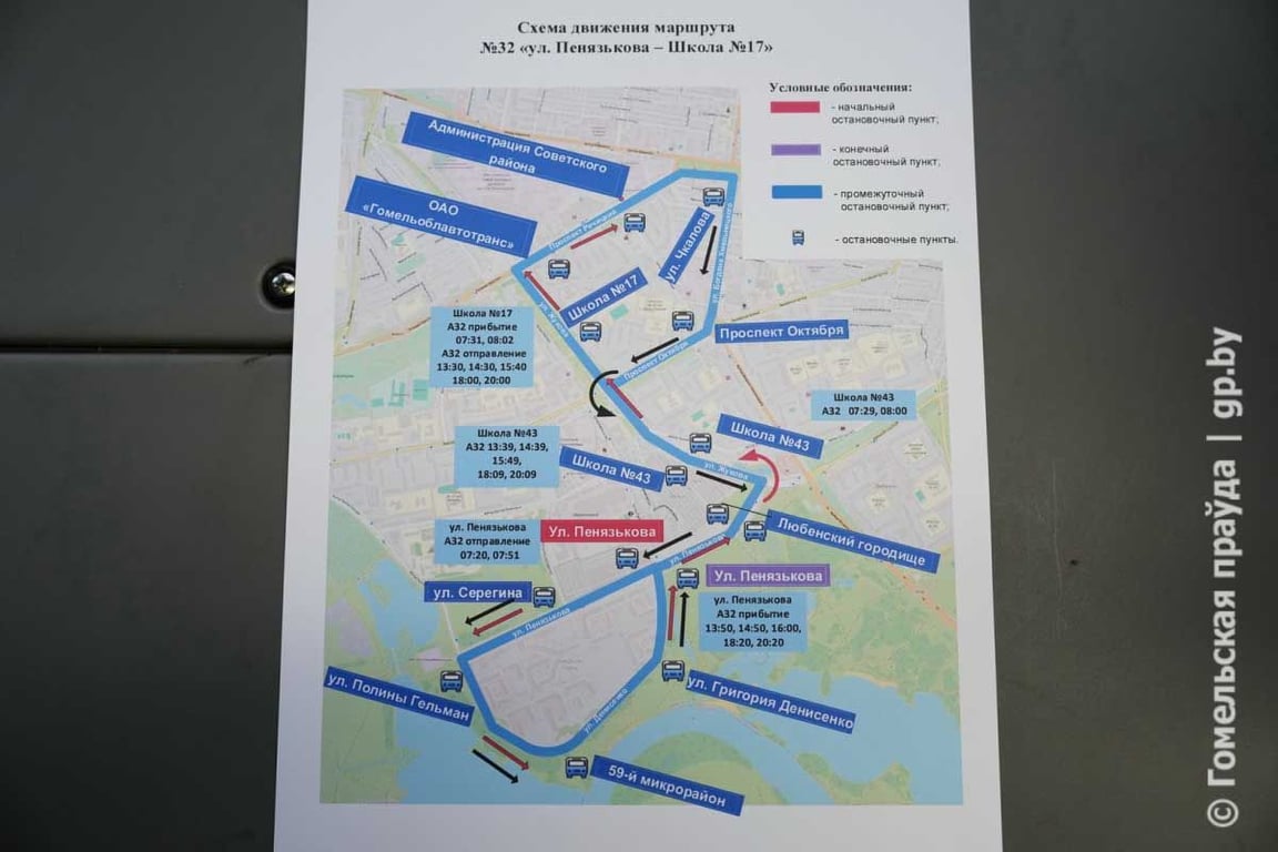 Судя по схеме, которую представили сегодня властям, первый утренний рейс запланирован на 7:20 с остановки «Улица Пенязькова». Далее автобус соберет пассажиров по улицам Полины Гельман и Денисенко, сделает остановку на «Любенском городище» и повернет на улицу Жукова, чтобы в 7:29 уже быть на остановке, которой, скорее всего, присвоят название «Школа №43».