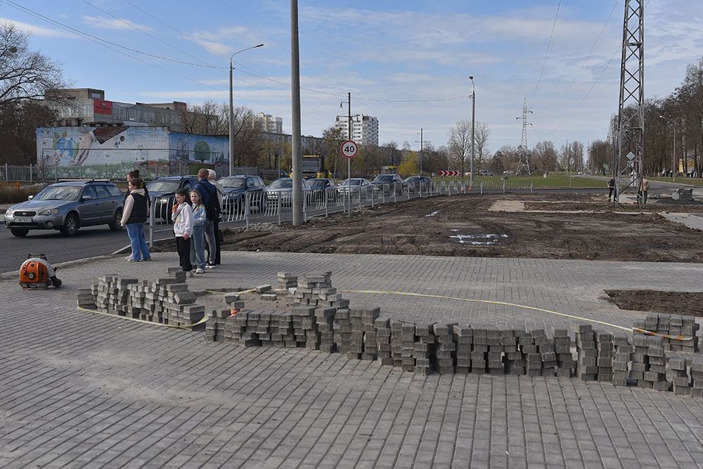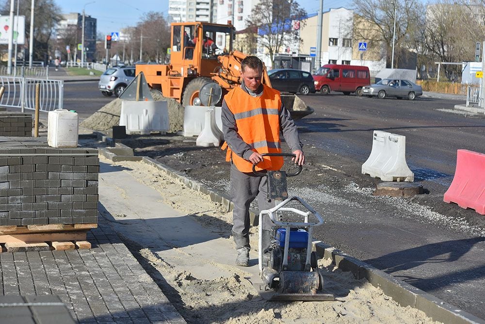Генподрядчик на объекте – управление специализированных работ ОАО «Гомельпромстрой». У остановок общественного транспорта, а также со стороны банка рабочие по новой конфигурации уже установили бортовой камень, вывели песчаную подушку под тротуар и в эти дни завершают укладку тротуарной плитки.