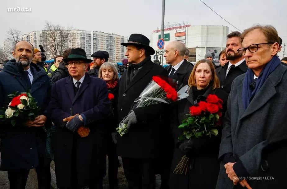 Попрощаться с Алексеем Навальным пришли послы стран Евросоюза и США.