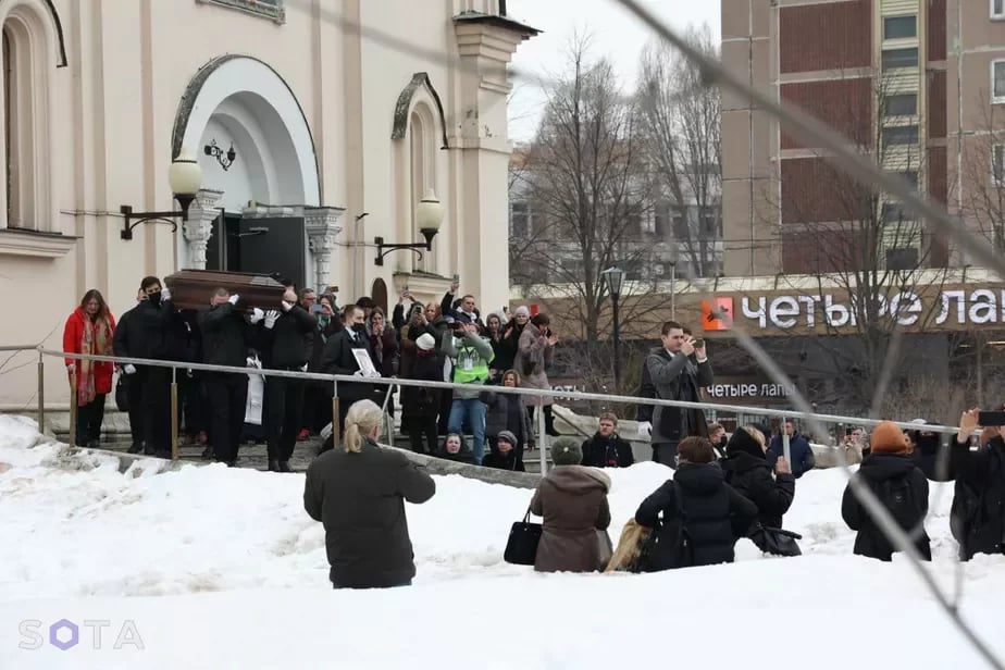 Около 15.00 гроб с телом Навального вынесли из храма.