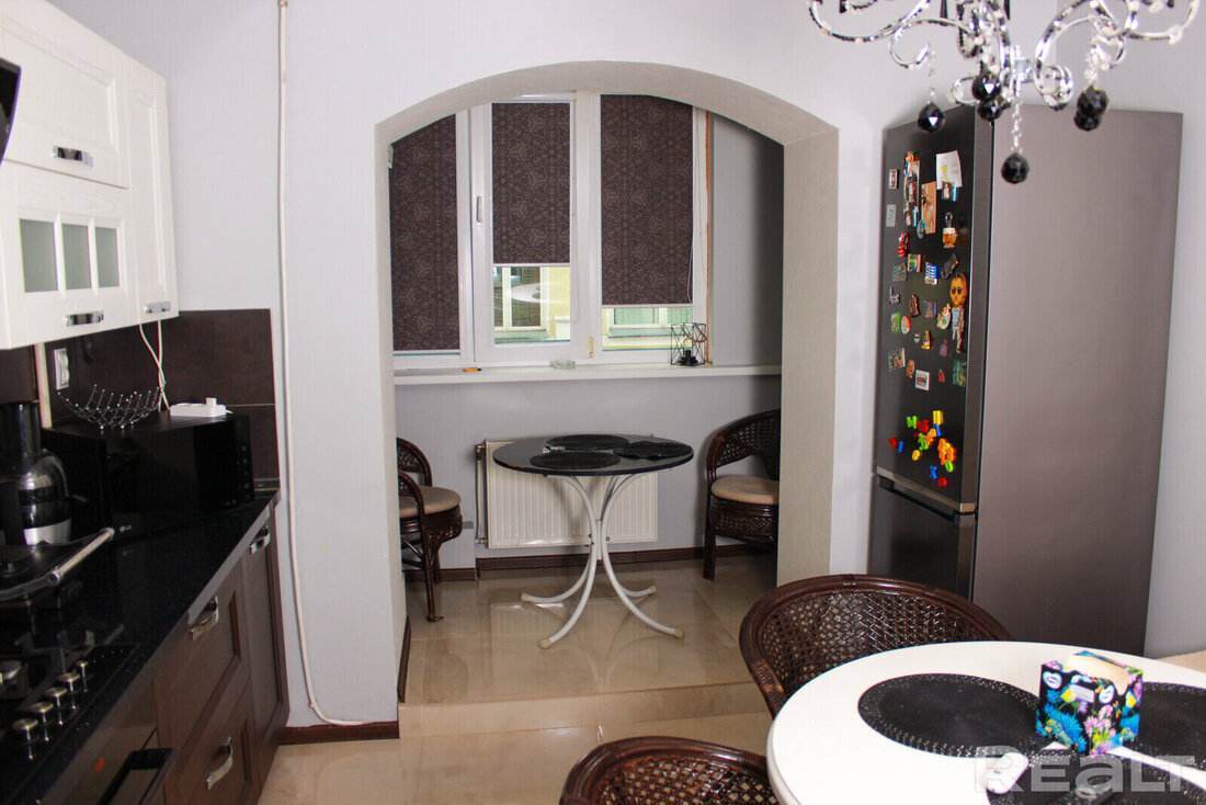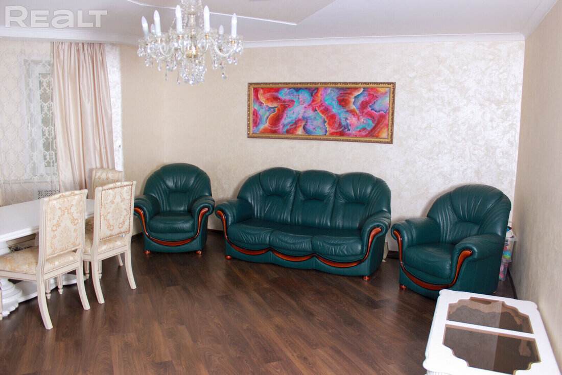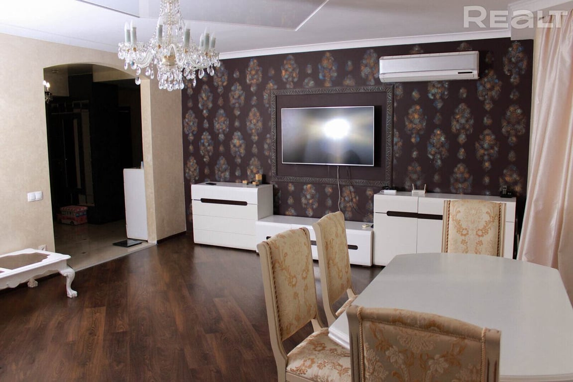 А сейчас тут на продажу выставили интересную квартиру площадью почти 104 квадрата в классическом стиле. Она находится на шестом этаже. Гостиная занимает 30 квадратных метров. В ней оборудована зона столовой, в квартире также имеются две спальни. Кухня большая — 13 квадратов. И это без учета объединенной с ней лоджии. За квартиру просят 105 тысяч долларов. Метр получается по 1011 долларов.