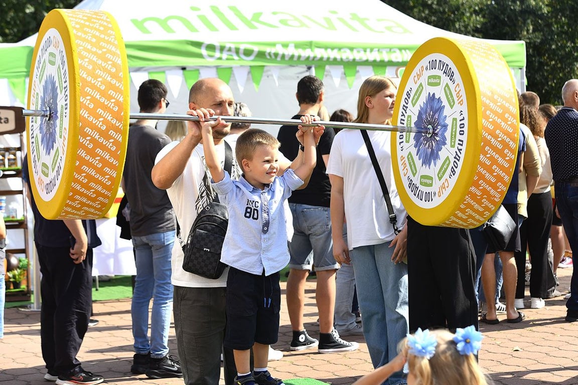 Гигантские глазированные сырки, колбасу и шоколадную конфету специально для фестиваля изготовили «Милкавита», Гомельский мясокомбинат и «Спартак». На продукты-гиганты можно было не только не смотреть, но и пробовать.