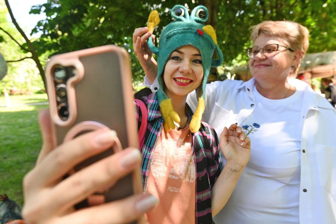 – Покупайте банные шапочки! Вам какая больше нравится – в виде лягушки или лисы? – спрашивает мастерица Татьяна с Могилёвщины. Сама в это время примеряет расцветкой похожую на божью коровку шапку.