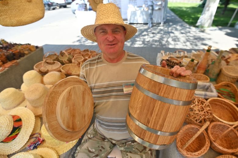 Михаил Дорошко в Гомель привёз изделия народных умельцев Столинщины.