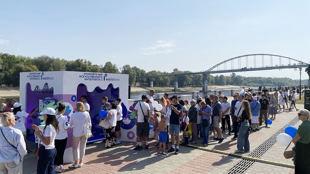 «Портал в будущее» работал в День города на центральной набережной, предложив горожанам и гостям города окунуться в цифровой мир и получить бесплатный портрет от нейросети. Необычная инициатива принадлежит Паритетбанку.