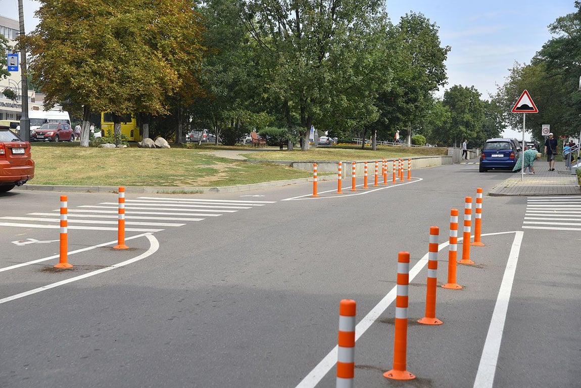 – Столбики препятствуют остановке транспорта вблизи пешеходных переходов. Таким образом, остается свободная от парковки и достаточная для обзора всем участникам движения зона. Конструкция сводит на нет случаи наезда на ребенка, внезапно вышедшего на дорогу из-за стоящего автомобиля, – объяснил принцип действия нового элемента дорожной сети директор СМЭП Гомельского облисполкома Александр Титов. – Кроме этого, вблизи участвующих в проекте школ установлено ограничение скорости для транспорта 30 км/ч.