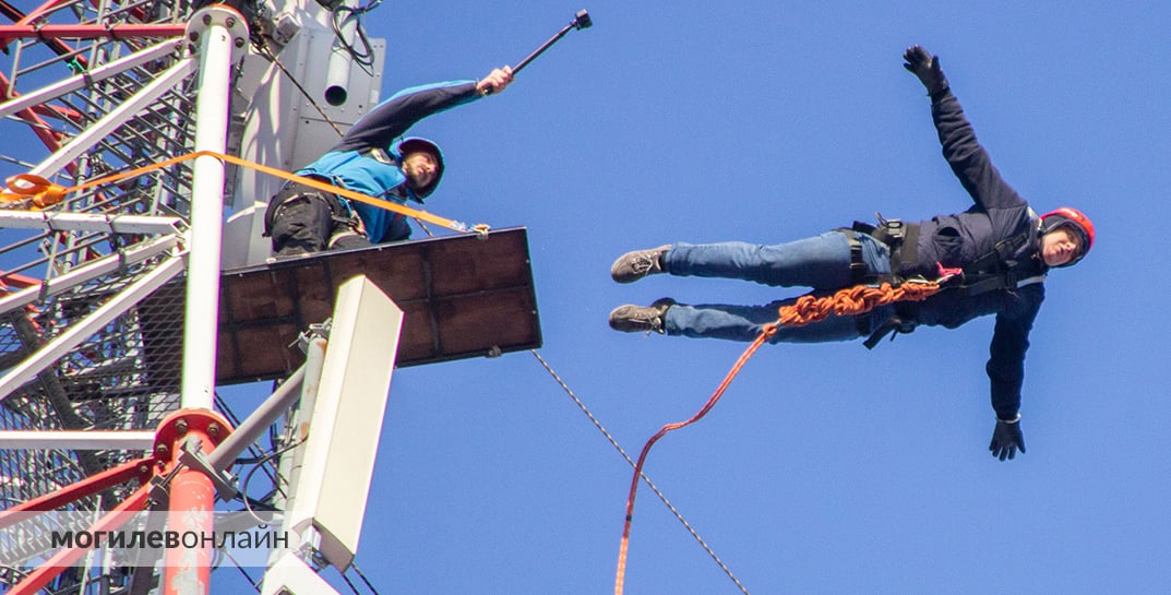 Вышка, с которой прыгали могилевчане — 75 метров, но высота выхода на прыжок составила 60 метров.