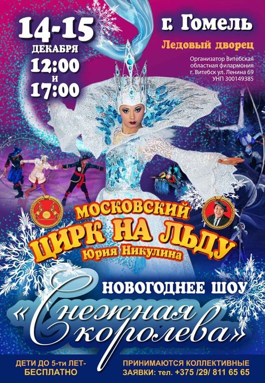 Московский цирк на льду представит шоу «Снежная Королева», где участвуют 30 артистов: акробаты, жонглёры, эквилибры, вольтижеры и воздушные гимнастки.