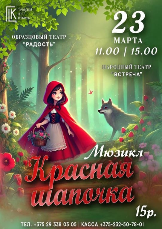 Это не классический сюжет про девочку, что несёт бабушке пирожки, а современная музыкальная история. Зрителей ожидают песни, танцы, музыка и, конечно, добрая сказка от воспитанников гомельских театров «Радость» и «Встреча».