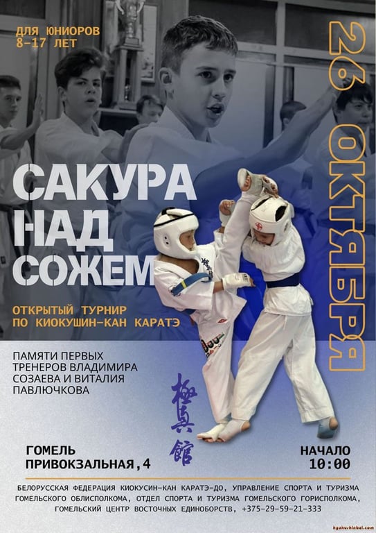 Гомель принимает международный открытый турнир по киокушин-кан карате «Сакура над Сожем» и «Кубок Гомеля по киокушин карате». Соревнования посвящены памяти первых в нашей стране тренеров по этому виду единоборств Владимира Созаева и Виталия Павлючкова.
