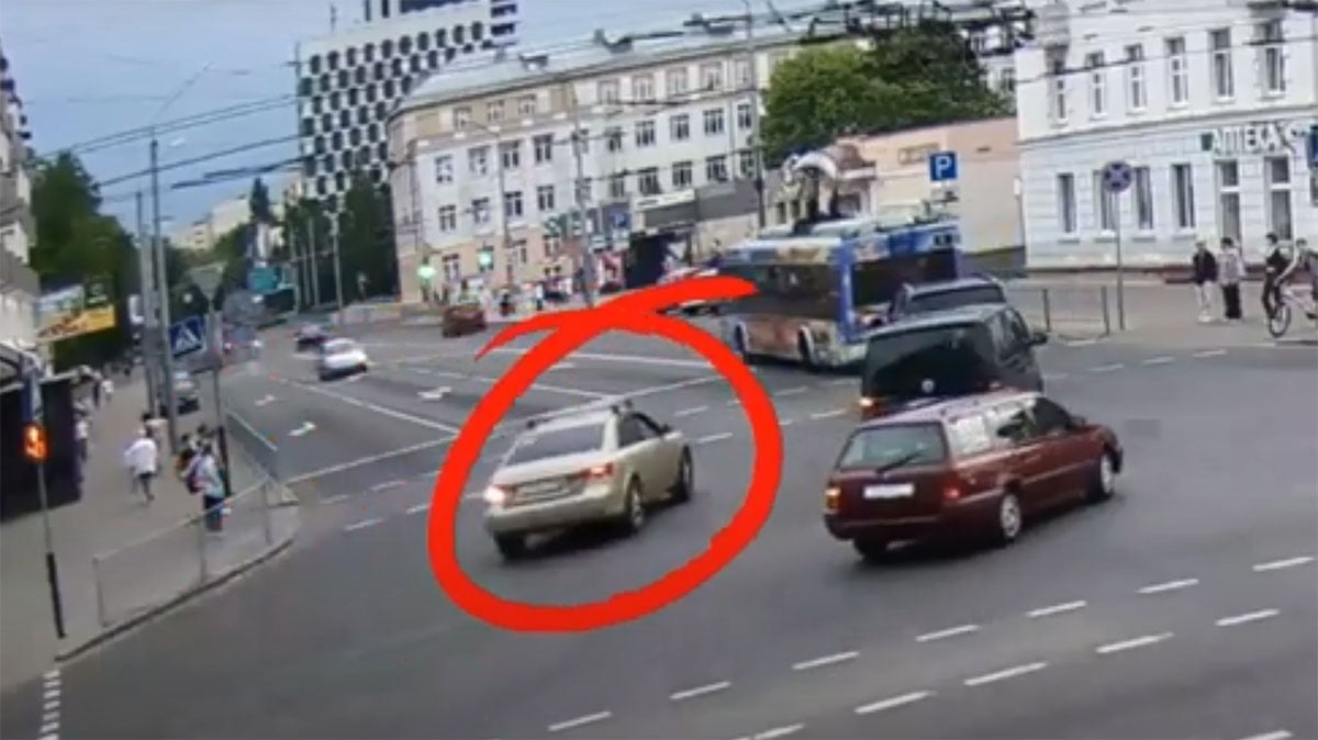 Один из нарушителей так спешил «проскочить» с улицы Советской на Рогачевскую, что выехал на перекресток, когда горел красный. А потом и вовсе поехал по «встречке», обогнав весь попутный поток транспорта.