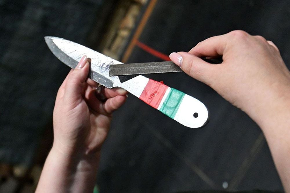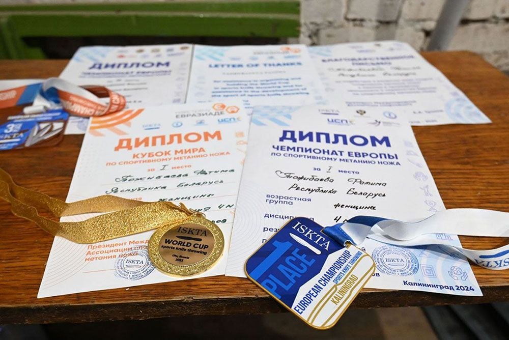 Порезаться инвентарем практически невозможно, напоминает собеседница. Каждый нож весит 330 граммов и не нуждается в частой замене. Если появились зазубрины, снаряд подтачивают напильником. Один комплект ножей из трех штук стоит около двухсот белорусских рублей. Его с лихвой хватит на несколько лет интенсивных тренировок. В общем, «малыши» живучи, а их покупка не бьет по карману.