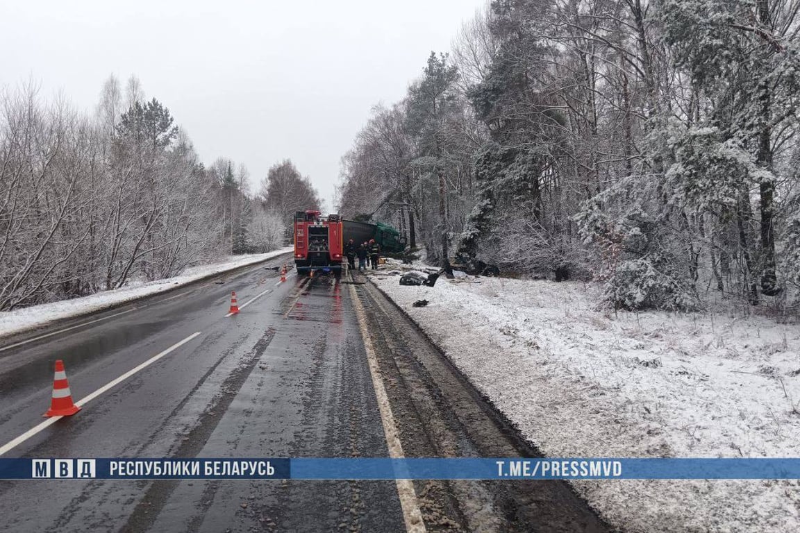 Водитель автомобиля KIA, по предварительной информации, не справился с управлением, допустил занос транспортного средства, выехал на полосу встречного движения, где совершил столкновение с грузовиком MAN.