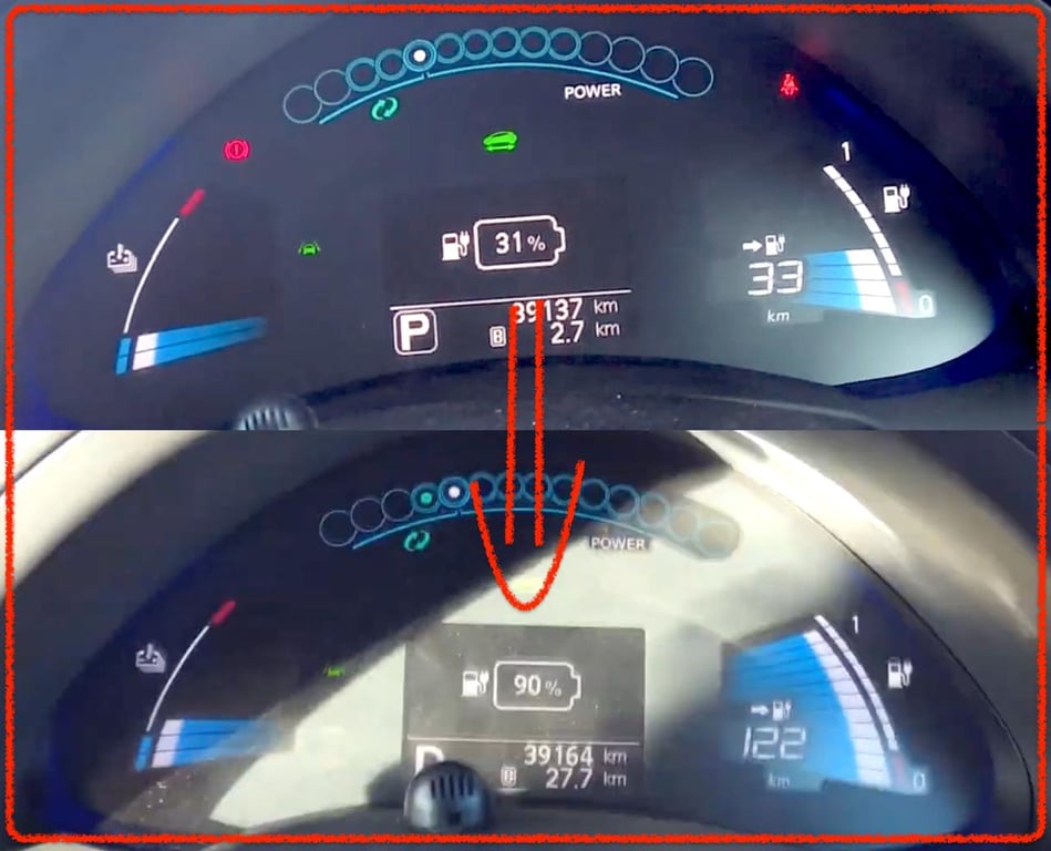 Сегодня точно установлено, что такой трюк можно проделать с Nissan Leaf, на таких автомобилях параметр остаточной ёмкости тяговой батареи (State of Health (SOH) доступен на приборной панели и в приложении “LEAF Spy”.