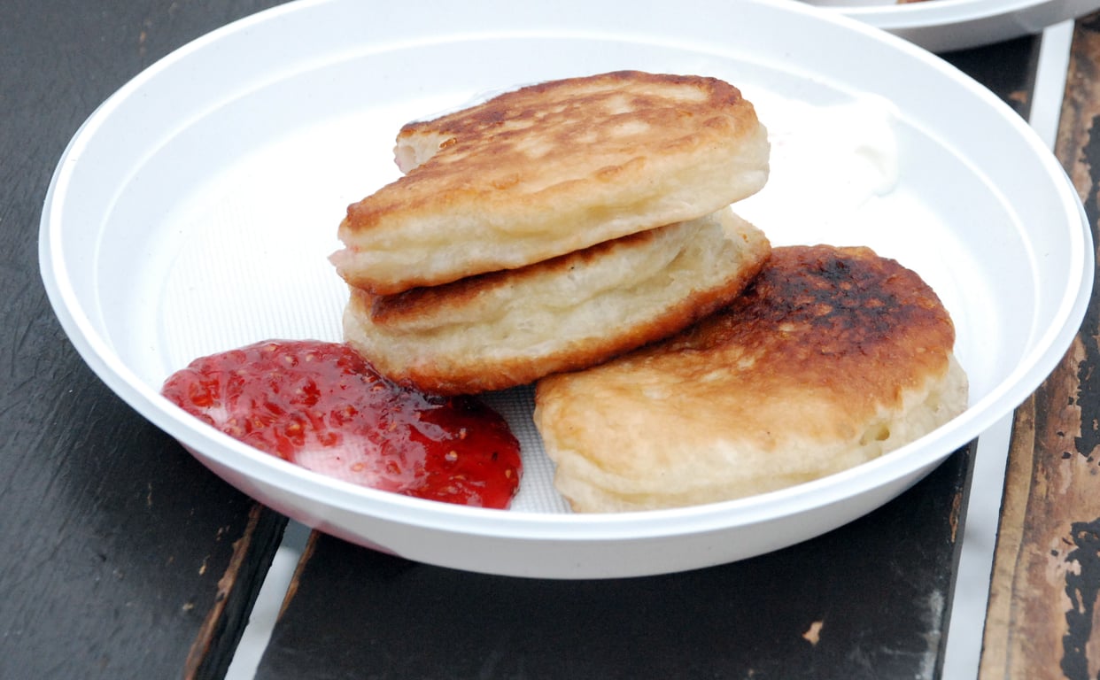 Смешать 350 грамм йогурта, 1 крупное яйцо, 2 столовые ложки сахара, четверть чайной ложки питьевой соды. Добавить стакан с горкой просеянной муки высшего сорта и соль по вкусу. Тщательно перемешать венчиком или миксером на малых оборотах, чтобы тесто не разлеталось по кухне. Влить четверть стакана растительного масла, лучше – рисового или из виноградных косточек. Через пол часа расстойки выпекать на очень горячей сковороде с двух сторон.