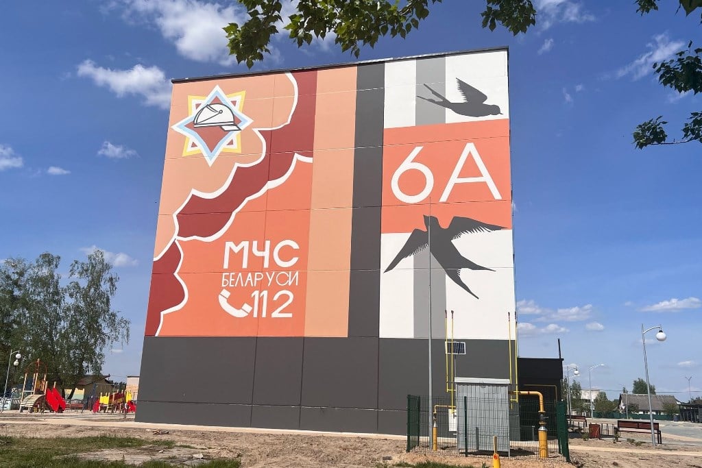 Яркая эмблема и профилактическая информация с номером службы спасения теперь украшает новостройку в агрогородке Знаменка.