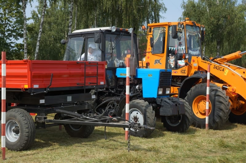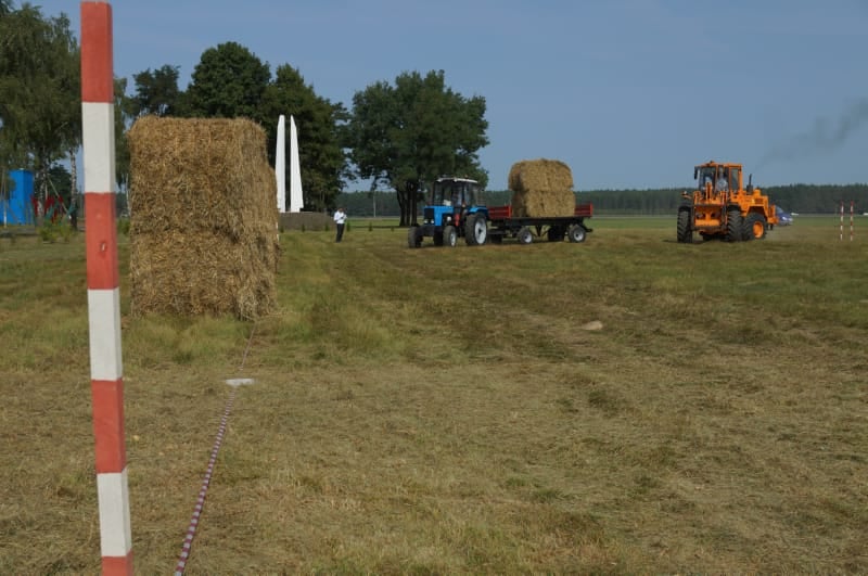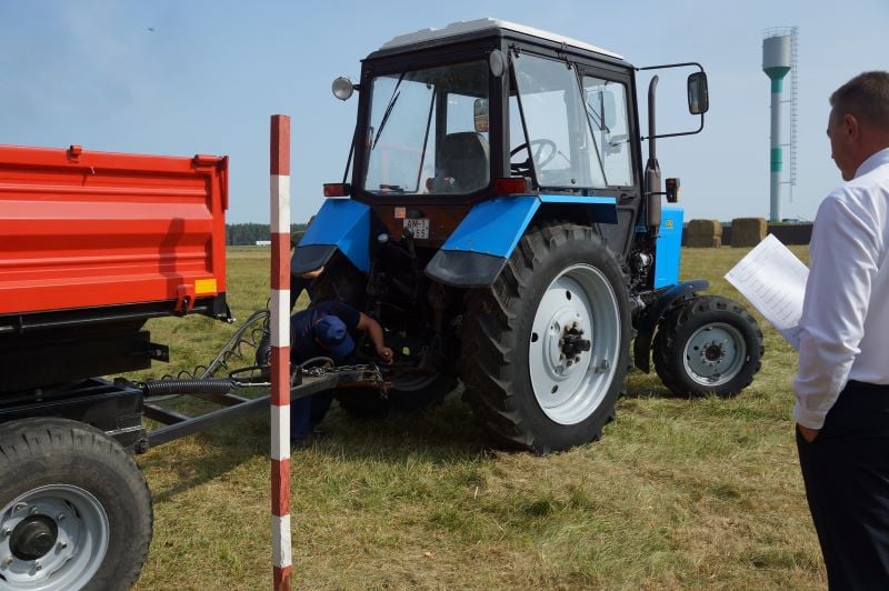 Проявить мастерство, скорость и точность в этом конкурсе предлагалось девяти командам, в каждой из которой по два человека. Задача, на первый взгляд, простая: один механизатор должен выехать из условного гаража, присоединить к трактору прицеп, припарковаться у складированных тюков. Напарник в это время должен подъехать на Амкодоре, погрузить в прицеп два брикета соломы. Затем «гуськом» участники проходят полосу препятствий (тут главное на крутых виражах из открытого прицепа не потерять соломенный груз), и аккуратно выгрузить в импровизированном сенохранилище.