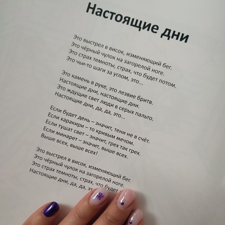 — До концерта у нас оставалось минут десять, — продолжает героиня. — И теперь я точно знаю: будь я одна, я бы уже за полчаса сидела бы на своем месте, предвкушая представление. А билеты у нас были очень классные: первый ряд бельэтажа. Но мы начали изучать книги, позвонила еще одна наша подруга, по видеосвязи мы стали взахлеб ей рассказывать, что вот-вот начнется концерт. И как только мы попрощались, а я собиралась достать кошелек, чтобы расплатиться за книгу, услышала из зала глухие хлопки, посмотрела в открытую дверь и увидела дымку — точь-в-точь как раньше на дискотеках пускали.