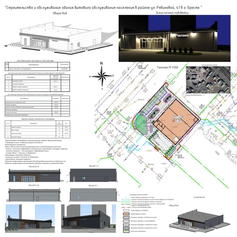 Это одноэтажное почти квадратное здание площадью 479,98 кв. м., в котором разместят пункт проката и фотоателье. А также благоустроят прилегающую территорию, в том числе предусмотрена и парковка.