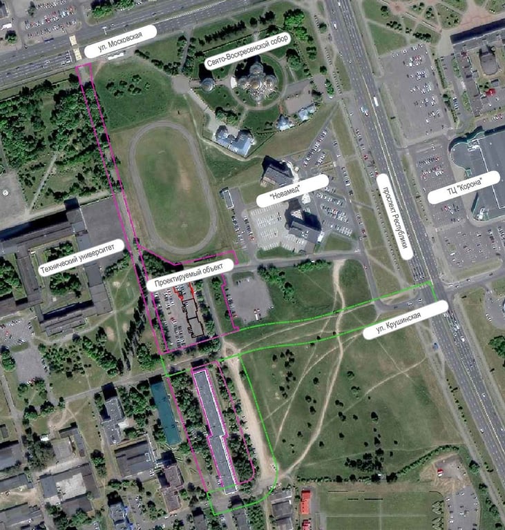 - организация транспортных и пешеходных связей, устройство велодорожек, благоустройство прилегающих улиц (ул. Крушинской) до проспекта Республики;