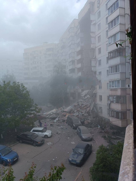 В Белгороде рухнул подъезд 10-этажного дома. По предварительной информации, был прилет снаряда ВСУ.